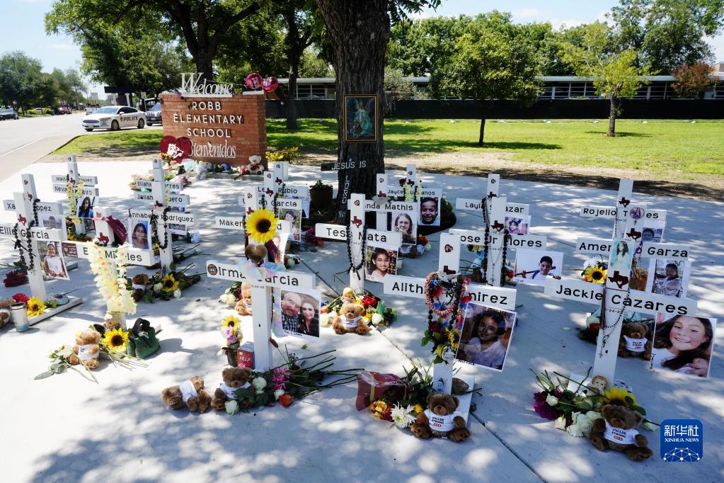 當日是美國尤瓦爾迪大規模校園槍擊事件一周年。2022年5月24日,19名學(xué)生和2名教師在尤瓦爾迪市羅布小學(xué)槍擊事件中遇難。