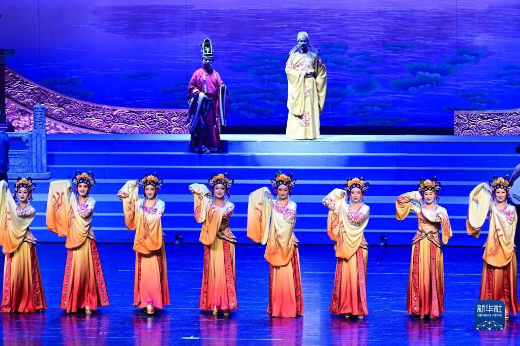 5月24日晚,演員在青海大劇院表演大型藏戲《金城公主》。