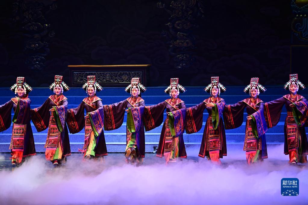 5月24日晚,演員在青海大劇院表演大型藏戲《金城公主》。