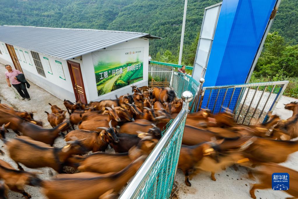 5月24日,在南江縣高橋鎮桅桿村,村民岳峰龍準備將南江黃羊趕到附近山上放牧。