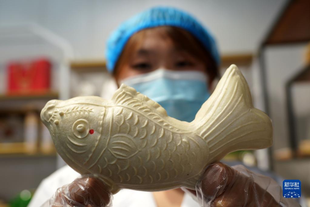 5月25日,在河北滄州渤海新區黃驊市一家農業(yè)科技公司產(chǎn)品展示廳,工作人員展示面花產(chǎn)品。