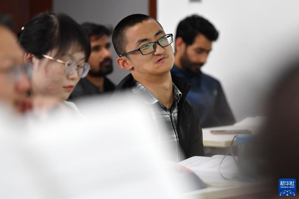 謝炎廷和同學(xué)在蘭州大學(xué)的教室里上課(5月10日攝)。新華社記者 陳斌 攝