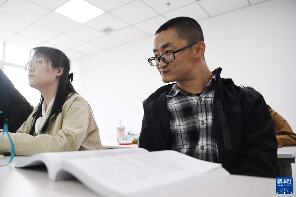 謝炎廷(右)和同學(xué)在蘭州大學(xué)上課(5月10日攝)。新華社記者 陳斌 攝