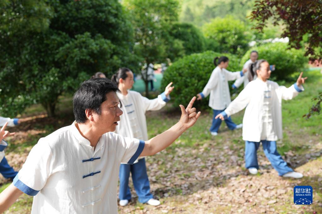 5月25日,小學(xué)生在教練帶領(lǐng)下練習五禽戲。