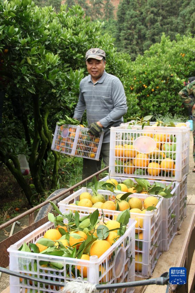 5月25日,在福建省南平市順昌縣雙溪街道陳布村的一家夏橙種植園,果農在采摘夏橙。