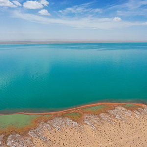 入夏以來(lái),位于新疆南部昆侖山與阿爾金山山脈間的阿雅克庫木湖碧波蕩漾,美景迷人。