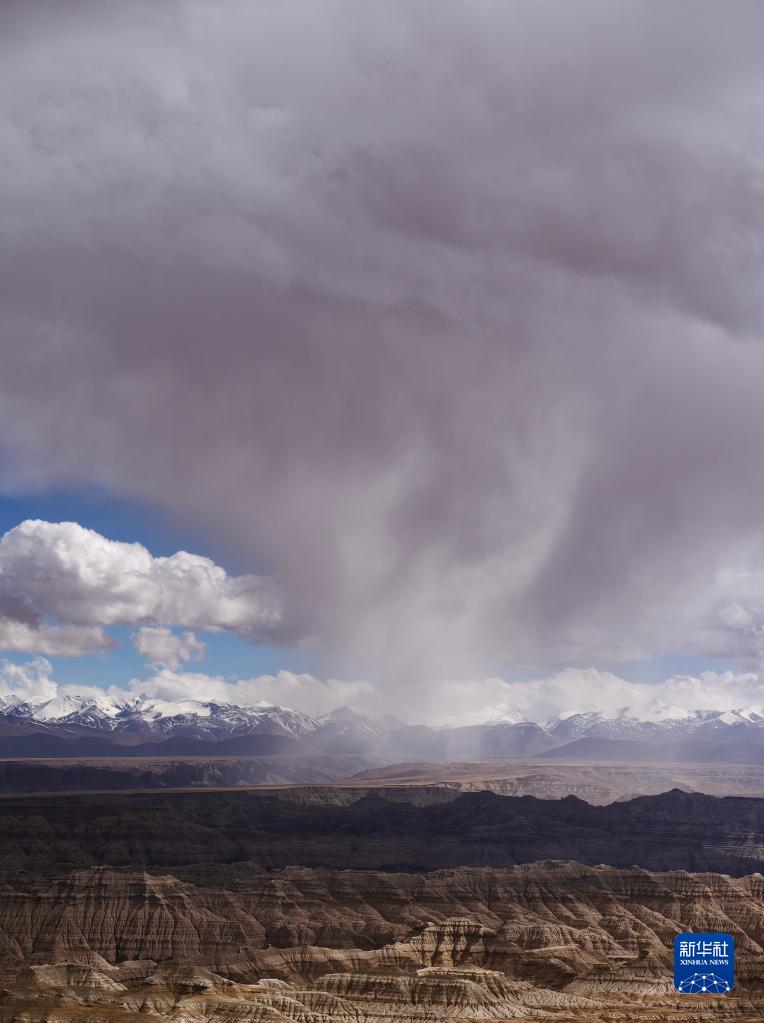 一片雨云飄到札達土林上空(5月25日攝)。