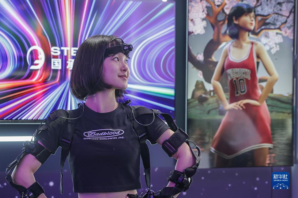 5月26日,模特在中關(guān)村國家自主創(chuàng )新示范區展示中心展示動(dòng)作捕捉設備。