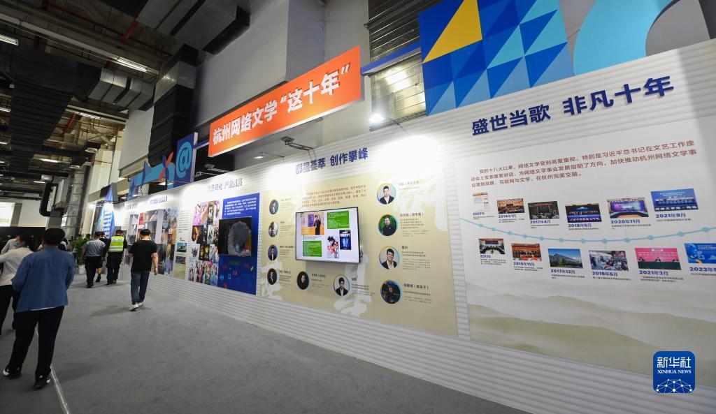 5月27日拍攝的網(wǎng)絡(luò )文學(xué)產(chǎn)業(yè)博覽會(huì )現場(chǎng)展示的杭州網(wǎng)絡(luò )文學(xué)成果。