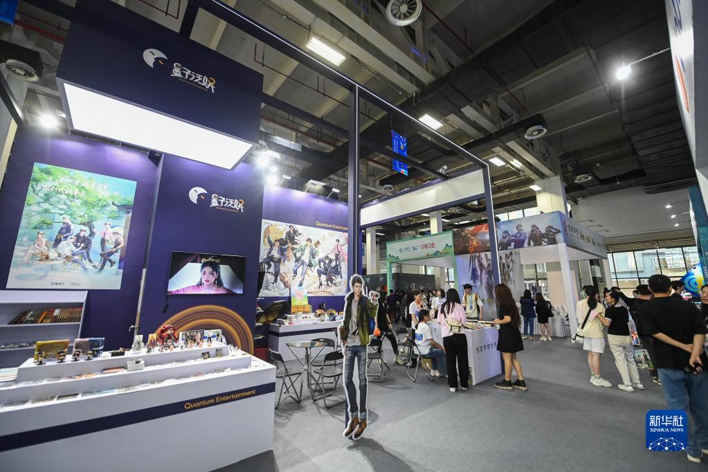 5月27日拍攝的網(wǎng)絡(luò )文學(xué)產(chǎn)業(yè)博覽會(huì )現場(chǎng)展示的網(wǎng)絡(luò )文學(xué)及衍生產(chǎn)品。