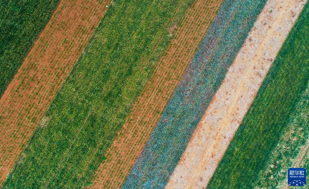 這是在廣東省湛江市徐聞縣曲界鎮拍攝的以菠蘿為主的農田(5月26日攝,無(wú)人機照片)。
