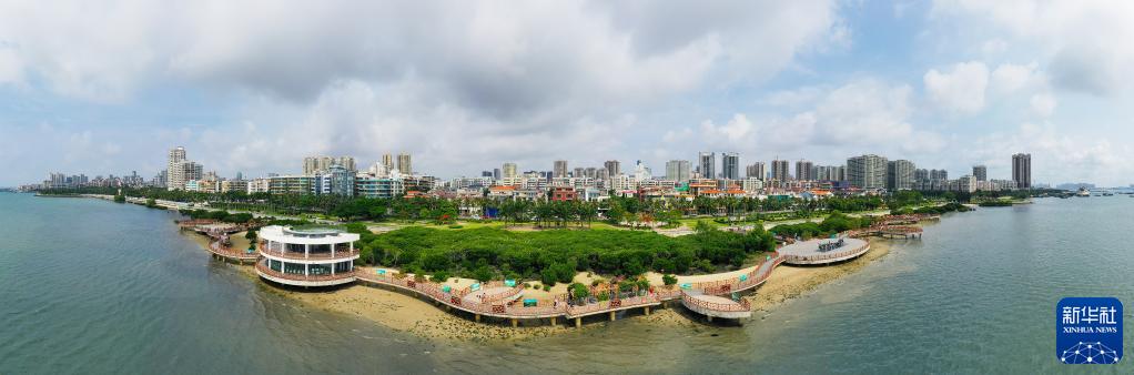 湛江市區海邊的紅樹(shù)林景觀(guān)(5月25日攝,無(wú)人機全景照片)。