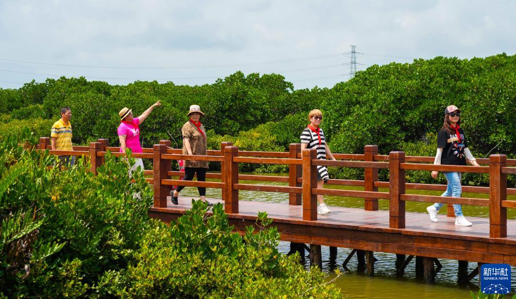 市民在位于湛江市的紅樹(shù)林國家級自然保護區金牛島片區游覽(5月25日攝)。