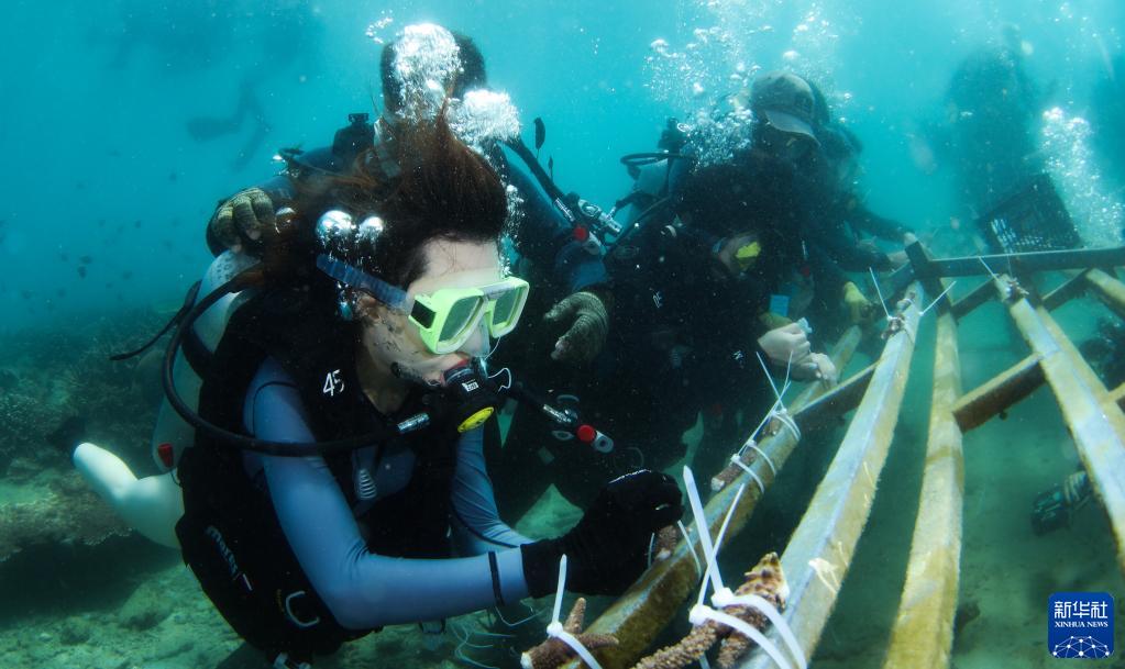 5月27日,潛水員在分界洲島附近海域移植珊瑚。