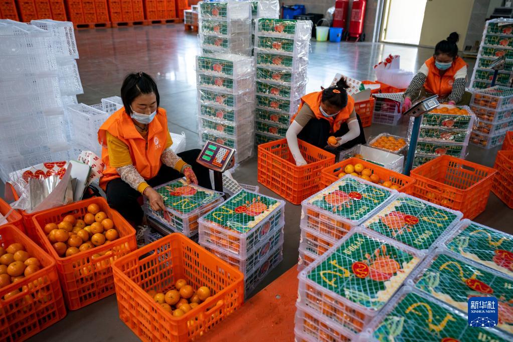 5月27日,工作人員在賓川縣一家農業(yè)企業(yè)內包裝柑桔。