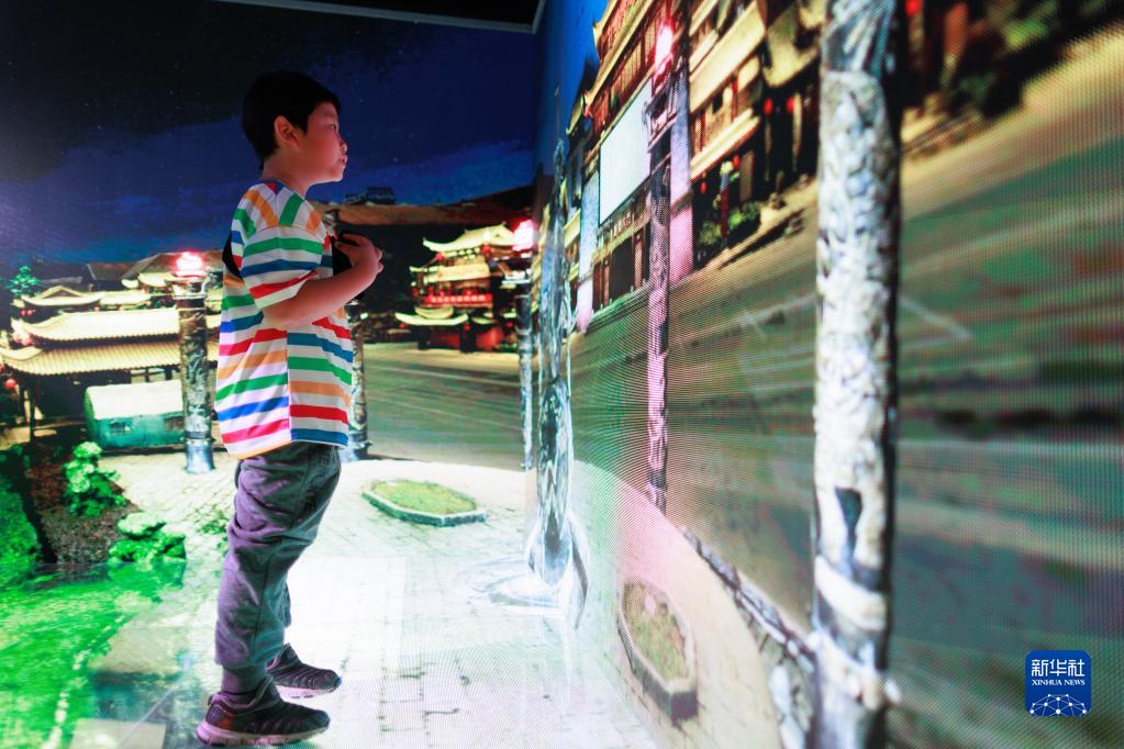 5月26日,一名小朋友在“數博會(huì )”上參觀(guān)數字化虛擬景觀(guān)。