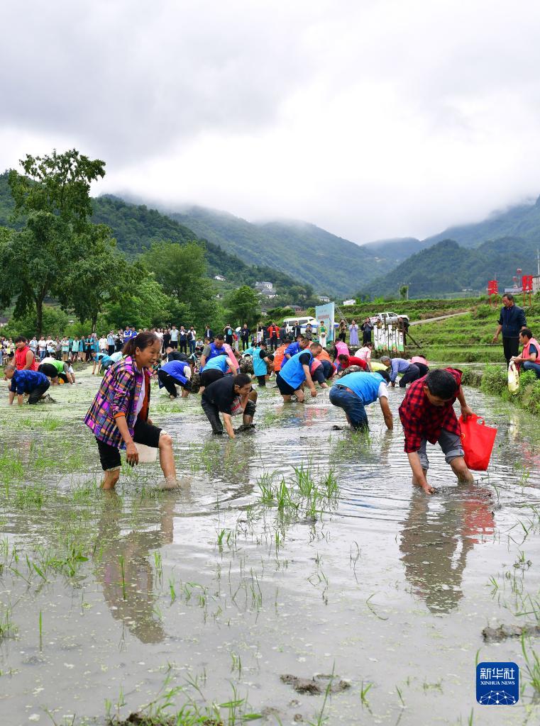 當日,湖北省宜昌市秭歸縣九畹溪鎮舉辦農民趣味運動(dòng)會(huì ),來(lái)自各村的200多名農民進(jìn)行拔河、挑水、插秧、摸魚(yú)等趣味競技比賽,樂(lè )享農耕文化的快樂(lè )。
