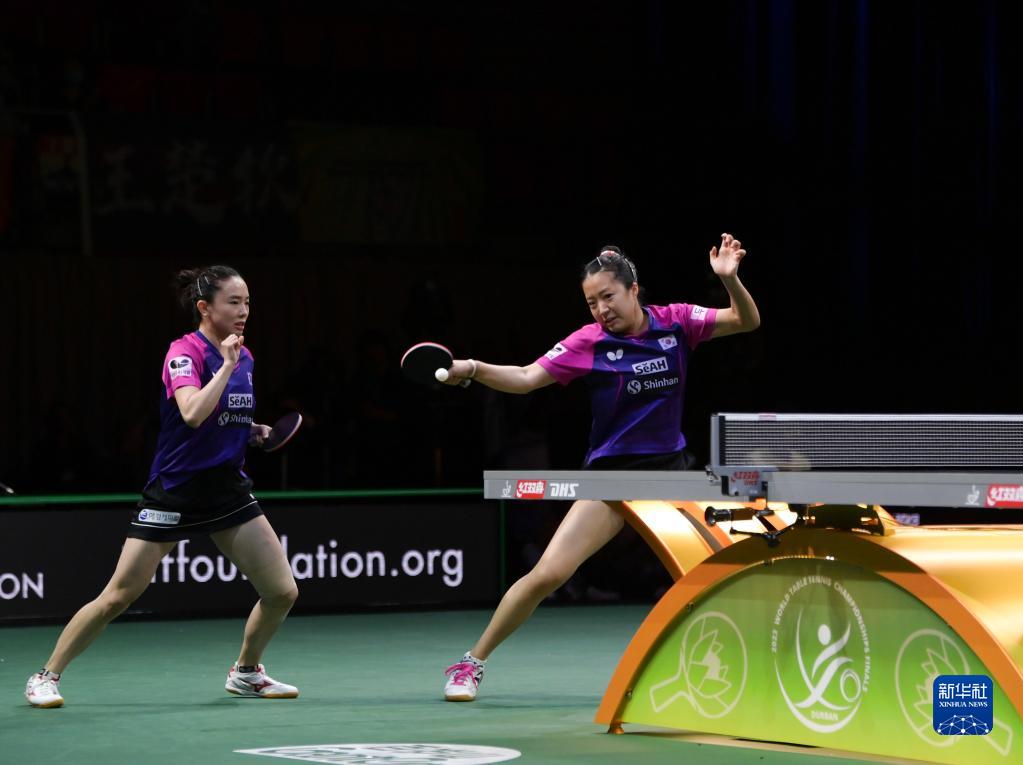 當日,在南非德班進(jìn)行的2023年世界乒乓球錦標賽女子雙打決賽中,中國選手陳夢(mèng)/王藝迪以3比0戰勝韓國選手田志希/申裕斌,奪得冠軍。