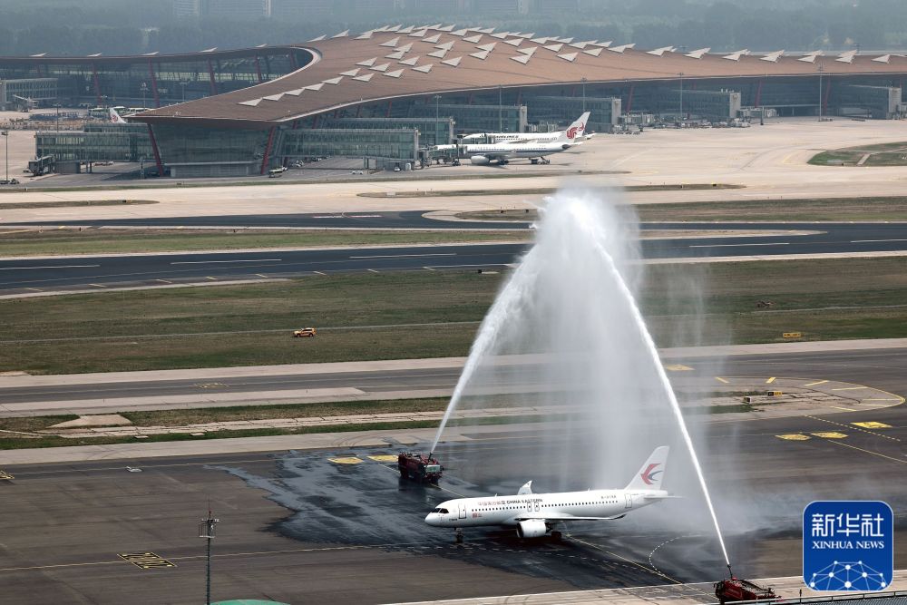 5月28日,C919首個(gè)商業(yè)航班東航MU9191在北京首都國際機場(chǎng)平安降落。新華社發(fā)(汪洋攝)