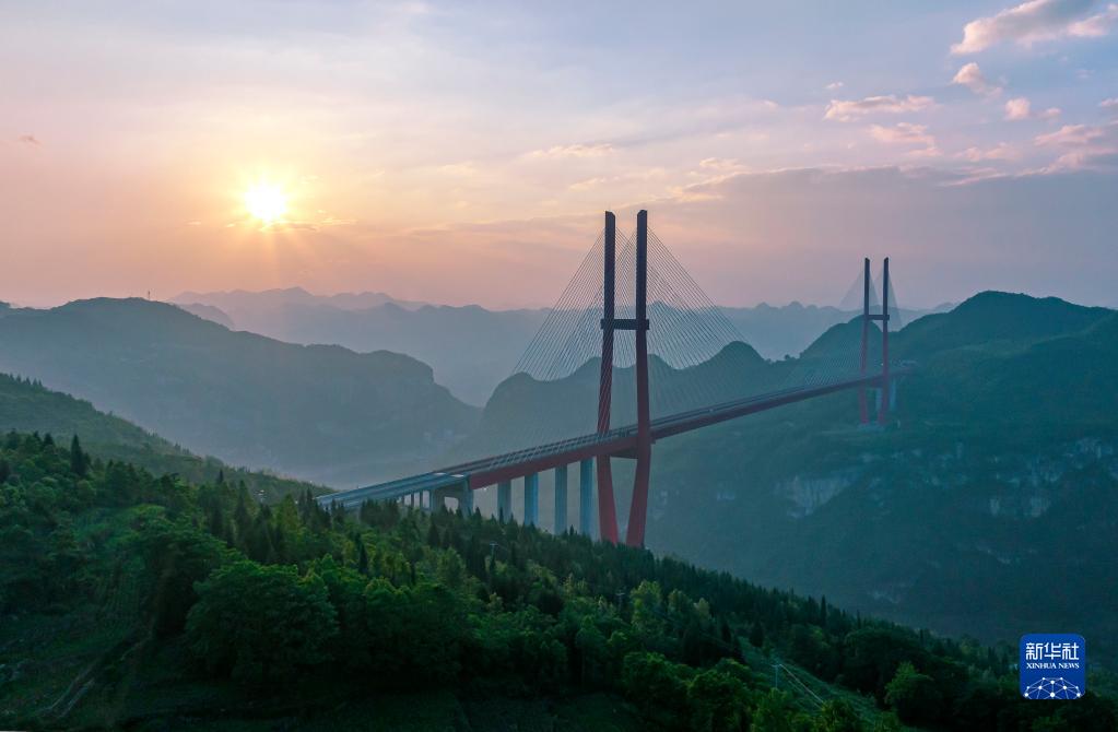 5月27日早晨在貴州省貴黔高速黔西市境內拍攝的鴨池河特大橋(無(wú)人機照片)。
