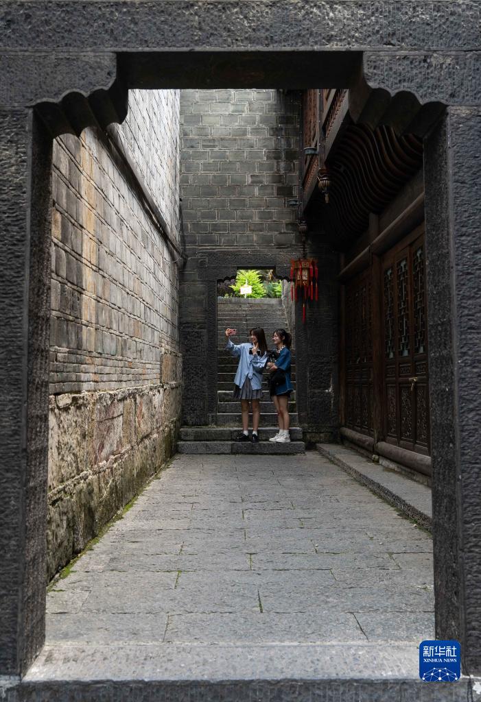 5月27日,游人在貴州省銅仁市中南門(mén)歷史文化旅游區拍照。