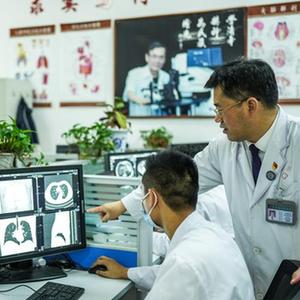 貴州省人民醫院醫學(xué)影像科醫生在對患者進(jìn)行檢查及圖像后處理(5月24日攝)。