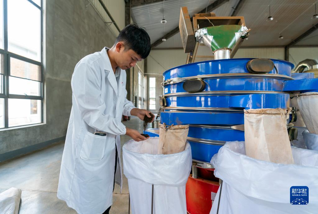 5月28日,一名工作人員在綠春縣一家茶葉加工企業(yè)查看生產(chǎn)的紅碎茶。