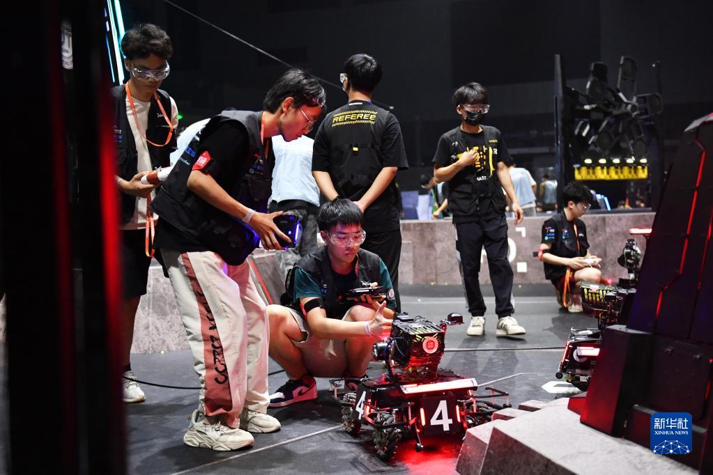 5月28日,深圳大學(xué)RobotPilots戰隊隊員在比賽前調試機器人。