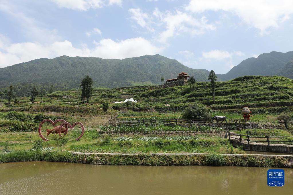 5月25日在麗水市青田縣方山鄉龍現村拍攝的青田稻魚(yú)共生系統一景。新華社記者 杜瀟逸 攝