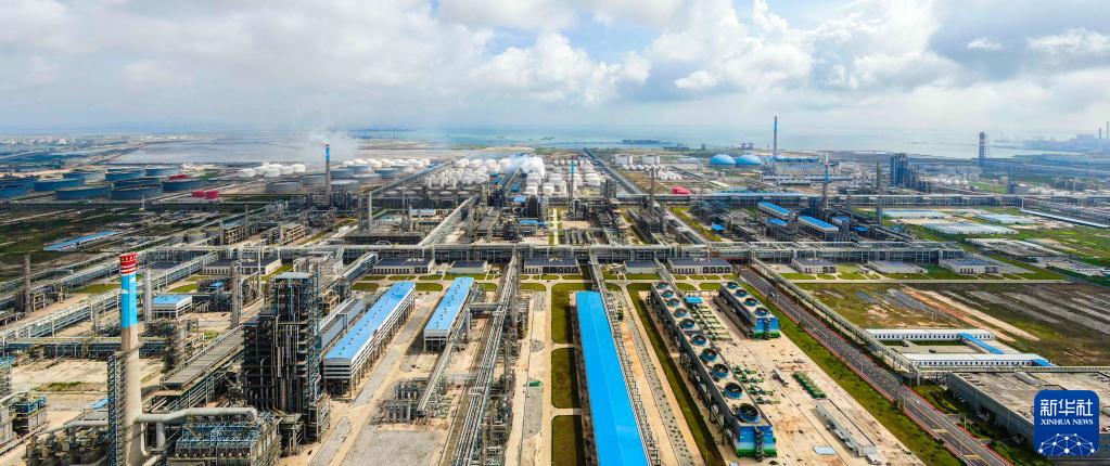 廣東省湛江市東海島拍攝的中科煉化廠(chǎng)區(5月25日攝,無(wú)人機照片)。聚集了寶鋼湛江鋼鐵、中科煉化和巴斯夫項目及一批上下游產(chǎn)業(yè)的湛江東海島,正迅速崛起綠色鋼鐵和綠色石化兩大千億級臨港工業(yè)集群,成為廣東最大的臨港工業(yè)島。