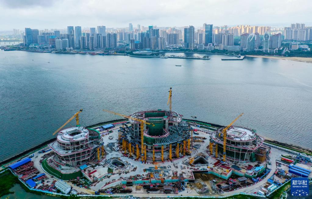 中建深裝承建的湛江市文化中心三館開(kāi)始安裝幕墻,建成后這里將成為湛江文化新地標(5月26日攝,無(wú)人機照片)。