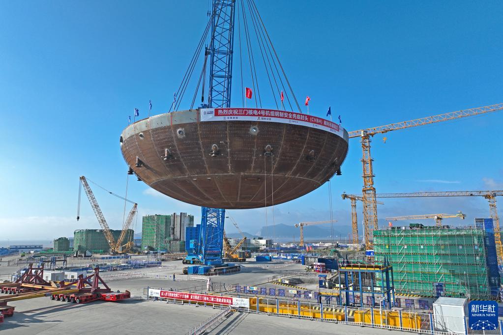 5月29日,在浙江省臺州市三門(mén)縣,三門(mén)核電二期工程4號機組核島鋼制安全殼底封頭順利吊裝就位。這是4號機組核島反應堆廠(chǎng)房吊裝的首個(gè)大型模塊,標志著(zhù)該廠(chǎng)房主體結構施工開(kāi)始。三門(mén)核電二期工程4號機組于3月22日開(kāi)工,整個(gè)二期工程建成投產(chǎn)后,一、二期裝機總容量將達到500萬(wàn)千瓦,年發(fā)電量預計可達到400億千瓦時(shí)。