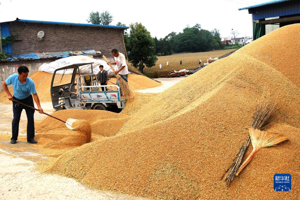 近期,河南省內鄉縣連續出現陰雨天氣,當地有關(guān)部門(mén)積極調配收割機搶收小麥,并把小麥收購網(wǎng)點(diǎn)設置在村頭,方便群眾就近出售小麥。