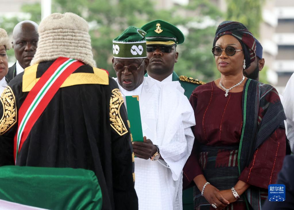 當日,尼日利亞新當選總統博拉·提努布在阿布賈宣誓就職。新華社發(fā)(索迪克攝)
