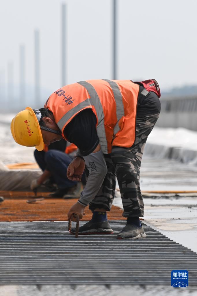 5月30日,中鐵十一局的建設者在杭衢鐵路無(wú)砟軌道施工現場(chǎng)作業(yè)。