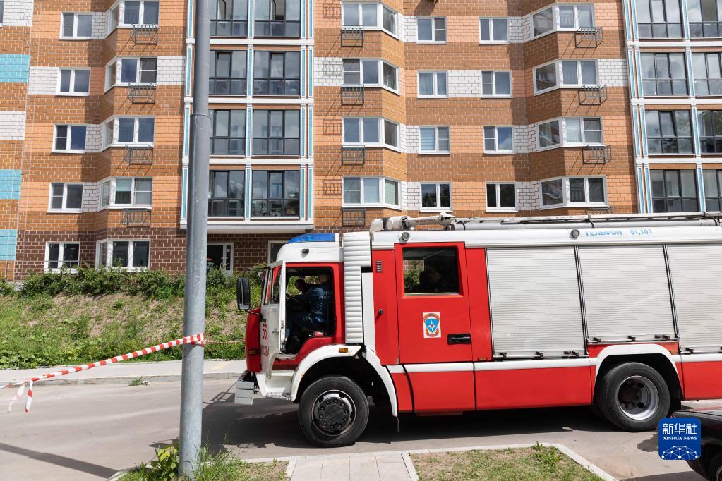 5月30日,消防員在俄羅斯首都莫斯科的樓房遭襲現場(chǎng)工作。
