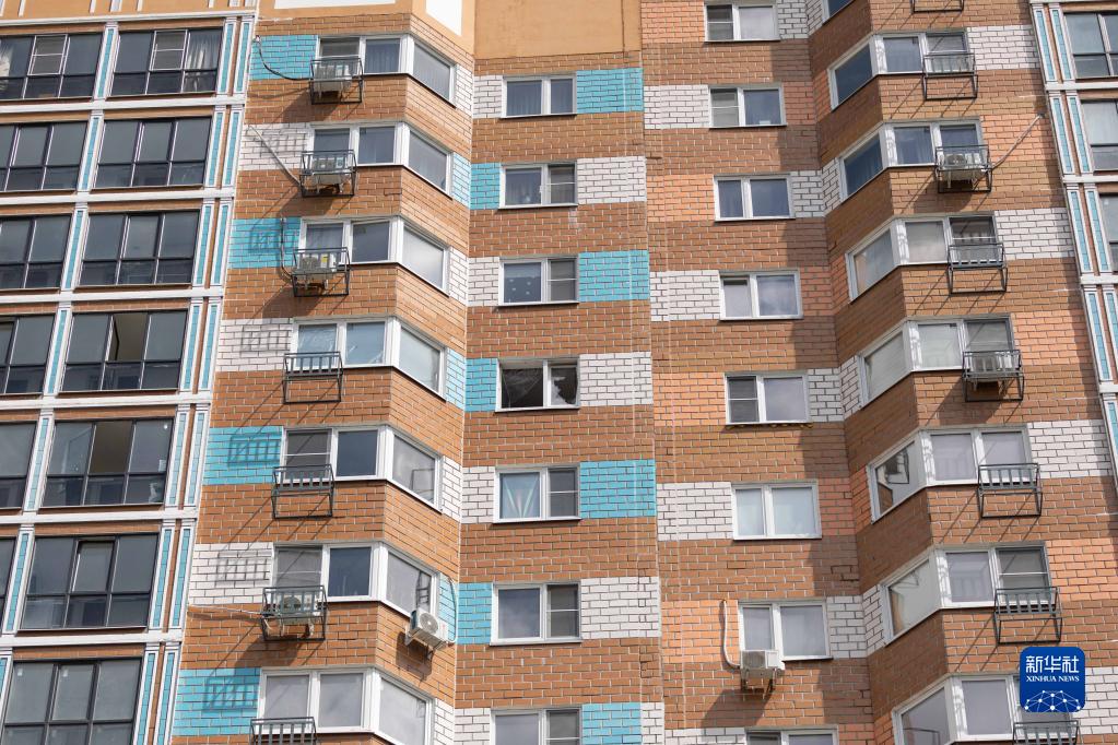 這是5月30日在俄羅斯首都莫斯科拍攝的受損樓房窗戶(hù)。