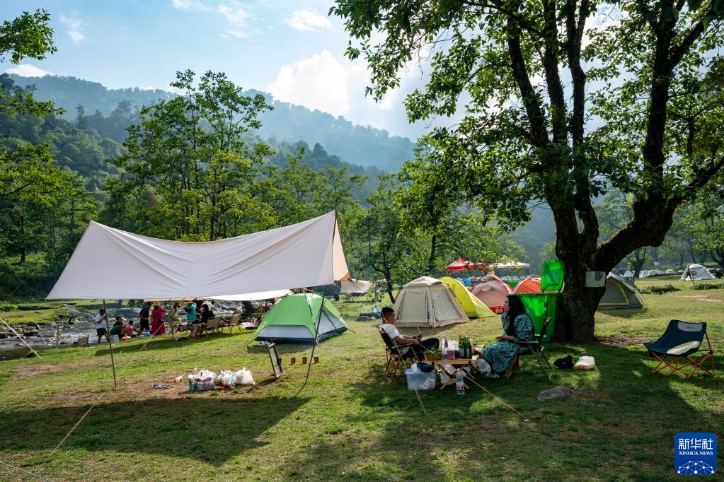 5月29日,游客在坪河草地景區露營(yíng)。