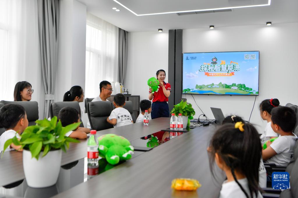 5月30日,在天津空港經(jīng)濟區西十四道綜合加能站,工作人員為小朋友科普清潔能源知識。