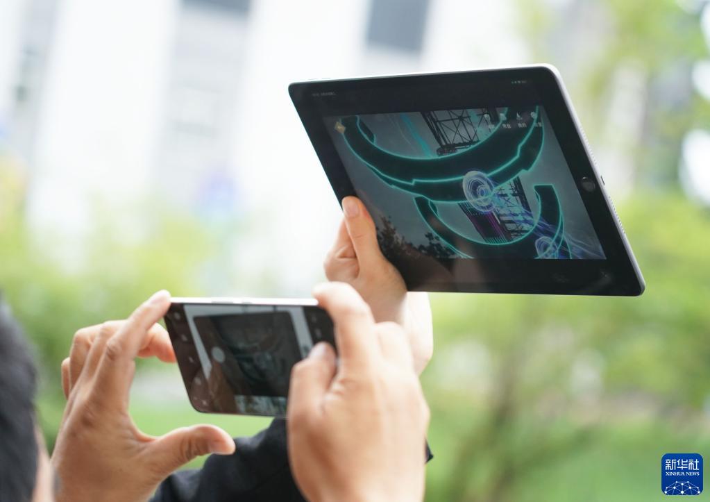 5月30日,工作人員在科幻產(chǎn)業(yè)新技術(shù)新產(chǎn)品展現場(chǎng)進(jìn)行AR(增強現實(shí))效果展示。