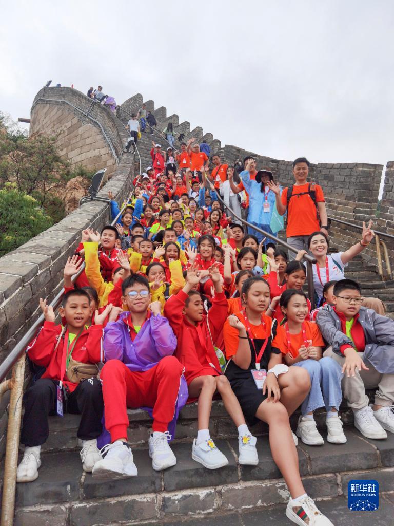 5月30日,參加第六屆“一帶一路·民心相通”學(xué)生手拉手活動(dòng)的老撾學(xué)生登上北京八達嶺長(cháng)城。此次活動(dòng)由中華慈善總會(huì )、老撾教育體育部共同主辦。來(lái)自老撾的100名少年兒童由萬(wàn)象出發(fā),乘坐中老鐵路國際旅客列車(chē)抵達中國后,從西雙版納開(kāi)始,在昆明、北京、西安、廈門(mén)、廣州等地走完為期16天的友誼之旅。