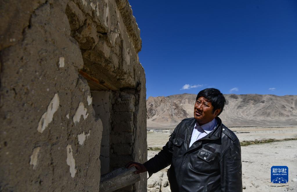 5月28日,扎西崗鄉的副鄉長(cháng)索南次仁向記者介紹典角村的“二代房”。新華社記者 晉美多吉 攝