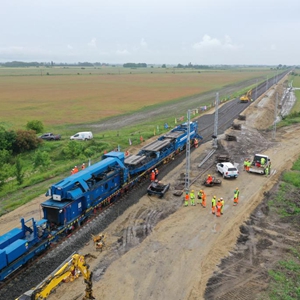 匈塞鐵路匈牙利段孔圣米克洛什-陶什站至伯斯特爾站區間首對鋼軌30日開(kāi)始鋪設。隨著(zhù)首對鋼軌落入承軌槽,匈塞鐵路匈牙利段中方段正式啟動(dòng)軌道鋪設工作,標志著(zhù)匈塞鐵路匈牙利段全面進(jìn)入鋪軌施工階段。