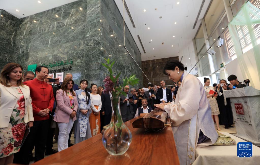 5月24日,嘉賓在約旦安曼舉行的“茶和天下·雅集”活動(dòng)現場(chǎng)欣賞古琴演奏。