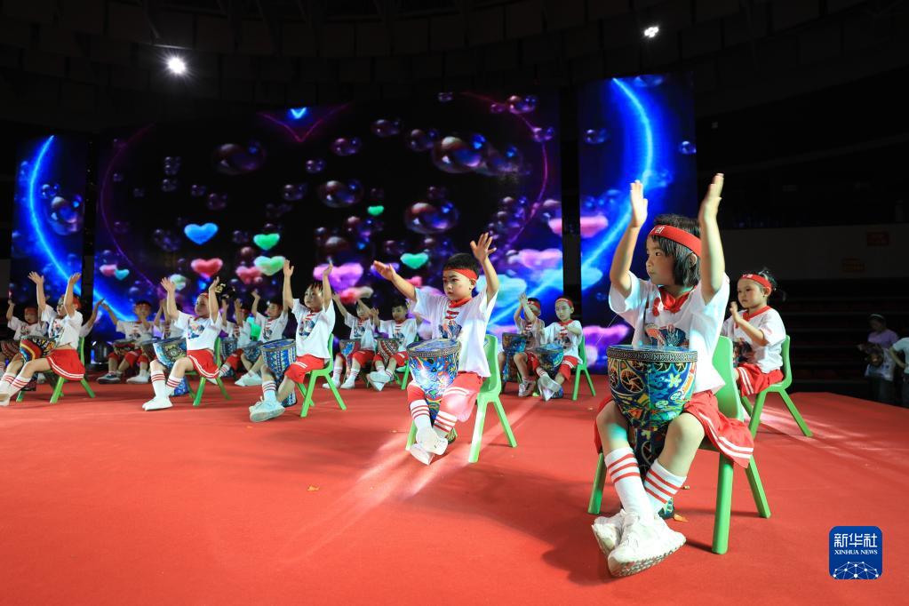5月30日,小朋友們在貴州省銅仁市江口縣體育館參加歡樂(lè )迎“六一”文藝匯演活動(dòng)。