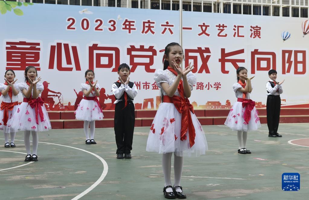 5月31日,在河南省鄭州市金水區緯一路小學(xué),學(xué)生在文藝匯演上表演。