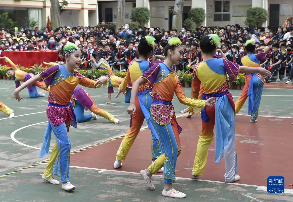 5月31日,在河南省鄭州市金水區緯一路小學(xué),學(xué)生在文藝匯演上表演。
