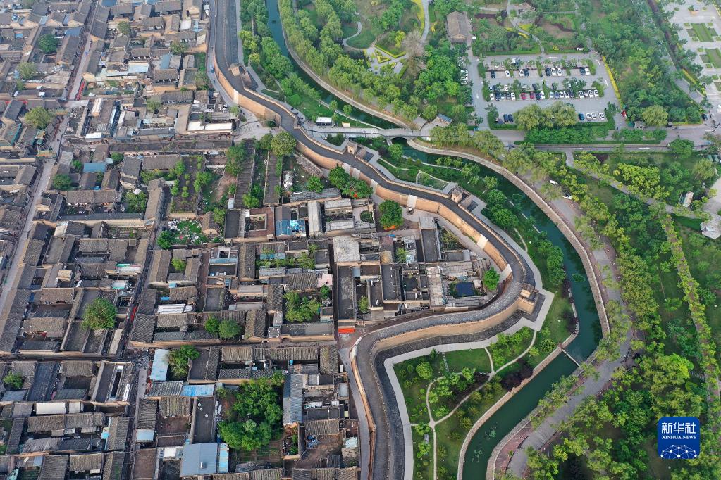 平遙古城一角(5月30日攝,無(wú)人機照片)。