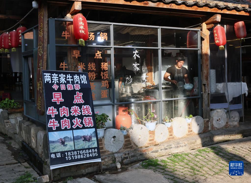 5月31日,普者黑景區仙人洞村一家餐館的工作人員在準備早餐。