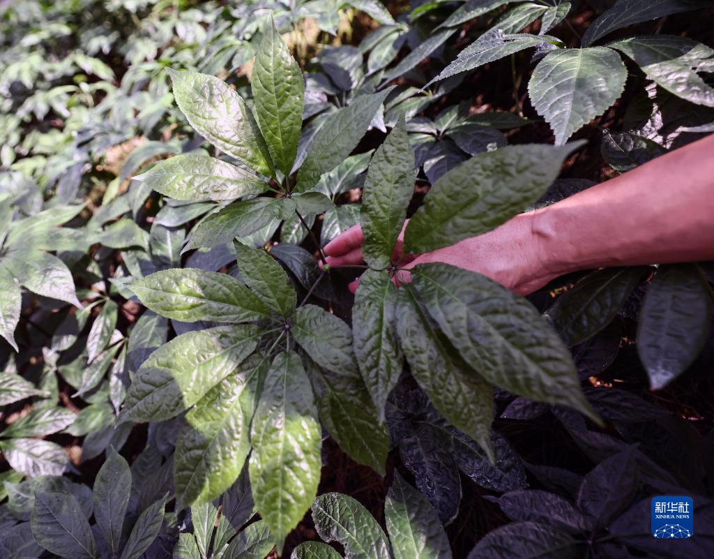 5月31日,在文山州西疇縣蓮花塘鄉一個(gè)三七種植基地,農民在查看三七長(cháng)勢。